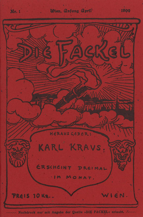 Die Fackel, volume 1, Karl Kraus, Wikimedia Commons <https://commons.wikimedia.org/wiki/File:Fackel_Kraus_1899_(1)_Cover.jpg> CC0
