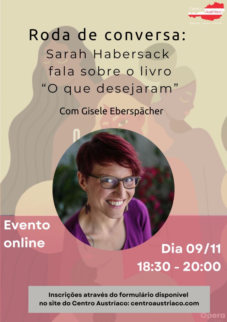 A escritora austríaca, que mora no Brasil há quase 5 anos, falará com a jornalista, tradutora e pesquisadora Gisele Eberspächer, sobre o seu livro “O que desejaram”, publicado pela Opera Editorial, em março de 2023. A narrativa conta a história de quatro mulheres, de diferentes gerações e países, que tentam superar conflitos internos e externos durante a história.