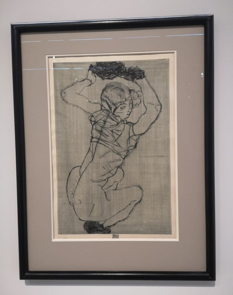 A mostra no Instituto Tomie Ohtake mostra também uma série de gravuras de grandes artistas austríacos, como Oskar Kokoschka, Gustav Klimt e Egon Schiele. A obra deste último possui poucas gravuras, mas algumas delas fazem parte da exposição. Na gravura abaixo, “De Cócoras” (1914), o artista tenta desvendar a psicologia das massas, ignorando tudo o que é superficial.