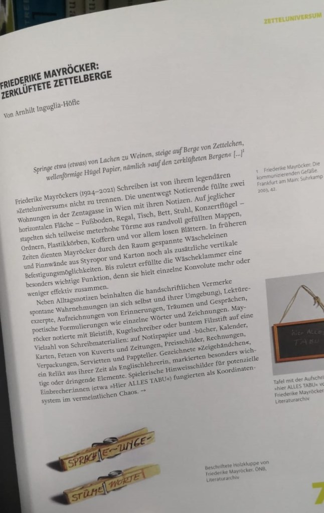 E, já chegou ao Centro Austríaco o catálogo publicado para a exposição mostrada em ocasião da Feira de 2023, “Jetzt & Alles: Österreichische Literatur. Die letzten 50 Jahre” [Tudo & Agora: Literatura Austríaca. Os últimos 50 anos]. Uma publicação caprichada que apresenta não apenas passagens de obras literárias de dezenas de autores, a maioria da geração atual, mas também fotos de objetos, manuscritos, obras de arte, anotações privadas e lugares que, de um jeito ou de outro, dialogam com a produção literária austríaca das últimas décadas. Muitas das obras dos autores e das autoras apresentadas ainda não tem tradução no Brasil – a publicação, que pode se consultada no Centro Austríaca, é portanto uma ótima introdução para quem se interessa pela literatura austríaca atual.