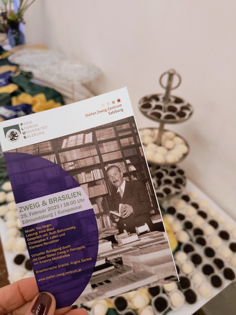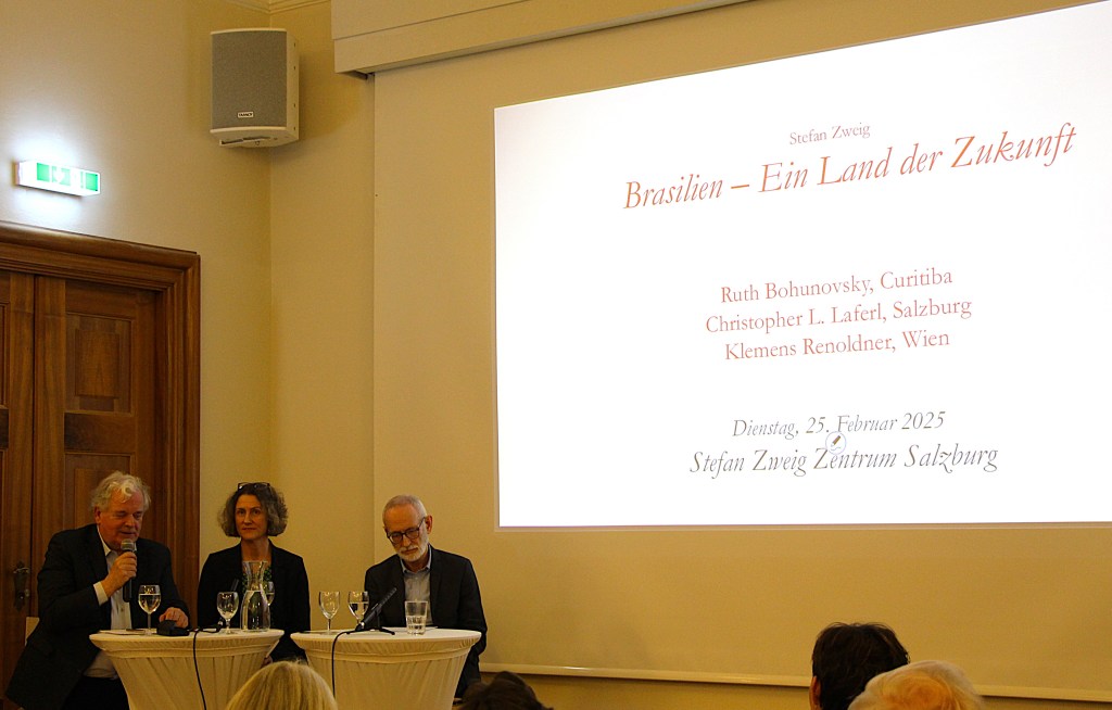 No dia 25 de fevereiro, o Centro Stefan Zweig de Salzburg sediou um evento especial sobre a relação do escritor austríaco com o Brasil – e a Sala Europa ficou lotada. A conexão de Zweig com o país tem muitas facetas: desde sua primeira visita, em 1936, ele ficou fascinado com o que encontrou. Entre 1930 e 1964, foi o autor de língua alemã mais lido no Brasil, um verdadeiro bestseller.